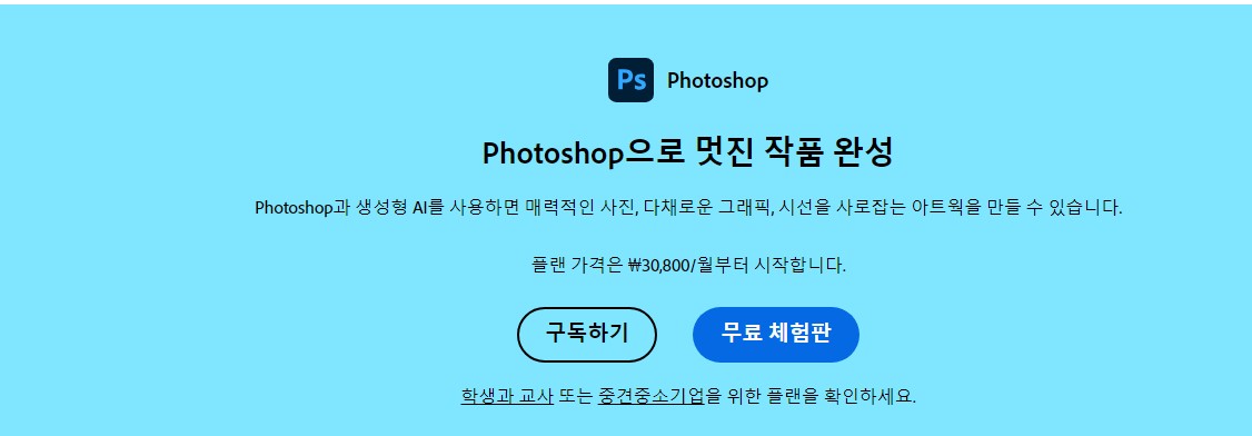 포토샵에 경우 유튜브나 인스타등 전문적을 하는 분들이 많기에 기본적으로 사용을 하는 경우가 많습니다 예전에는 전문가 영역이였다면 지금은 누구나 손쉽게 할 수 있는데요 크랙버전이나 이런것은 보안상 기능상 문제가 많기에 정품을 사용을 하는 것을 추천드립니다 그래서 정품최신버전 7일간 무료로 이용을 하시고 마음에 안든다고 하면 취소를 하시면되기에 아래링크 첨부드립니다