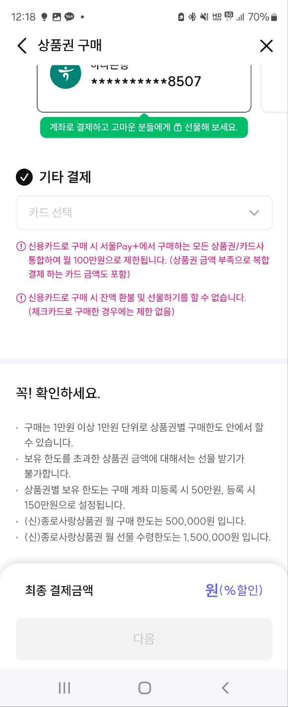 서울페이 구매하실 때에는 아무래도 신용카드로 구매를 해야지